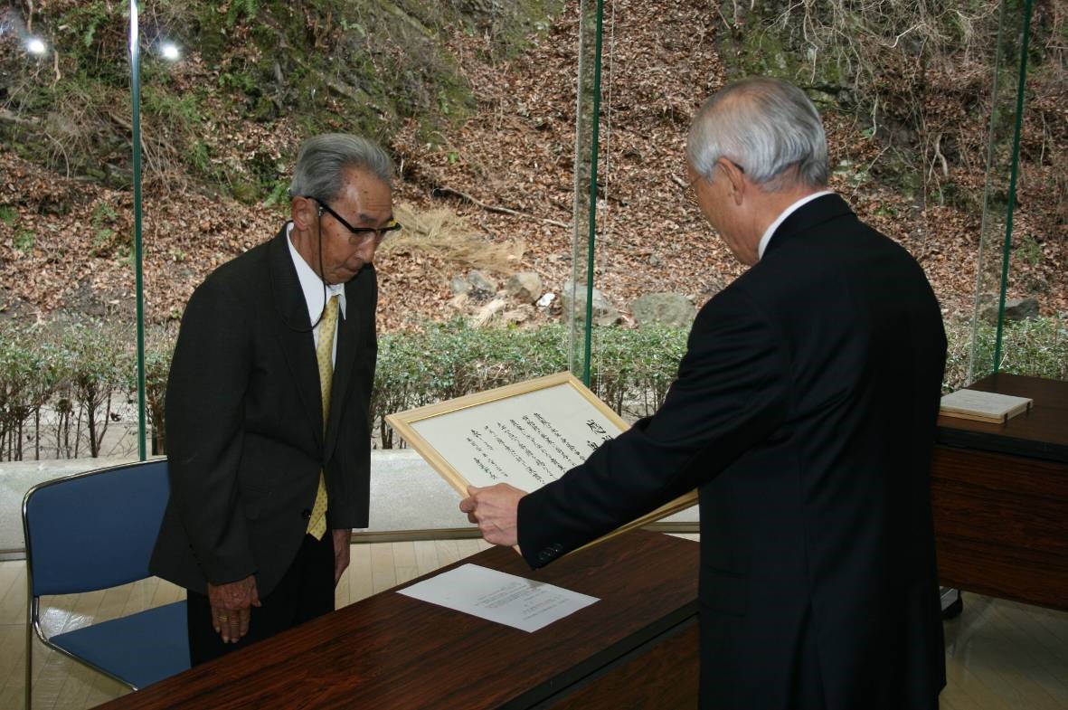 奥山氏への感謝状贈呈式の様子(平成20年3月)