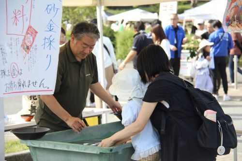 身延町の紹介&参加者の自己紹介をし、まずは砂金採りにチャレンジ!