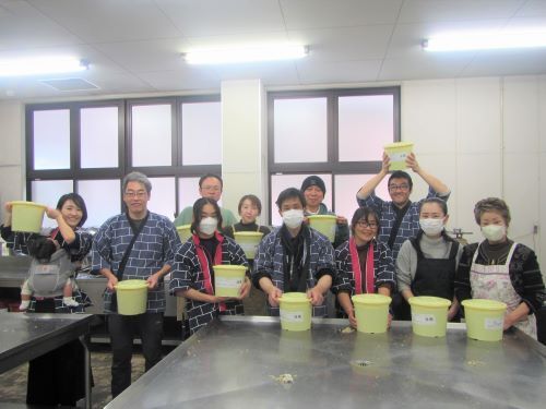 ここからは、体験ツアー参加の方に加え、先輩移住者さん(身延へ移住して3年以内の方)も合流し計12名となり、皆で「味噌づくり体験」をすることに♪