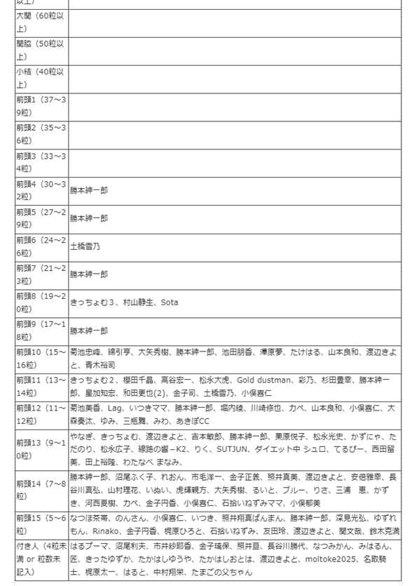 2010年度砂金採り番付表
